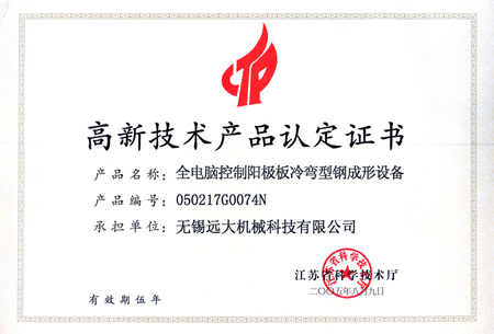 高品證書(全電腦控制陽極板冷彎型鋼)