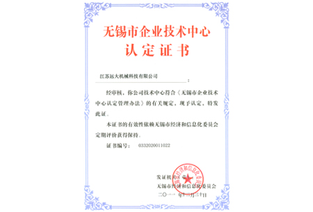 無錫市企業技術中心認定證書